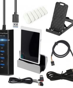 Package 3: Screen +Type-C data cable + stand +usb four-port spliter +Type-C charging base + Elbow data cable type-c+4PIN motherboard transfer cable 9 pins