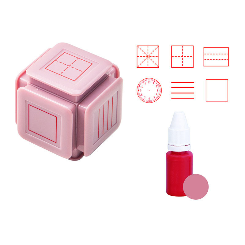 Style A: Six-sided Tianzi Grid Seal-Pink (Red Ink)