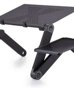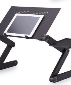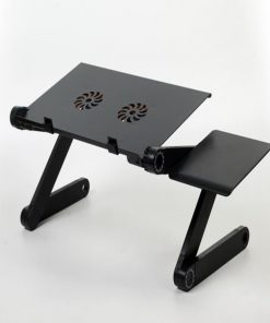 This is a portable multifunctional foldable computer desk, which can be placed on the desk as a standing desk, on the bed or wherever you want to use the laptop comfortably! You can also put a book or tablet to free your hands. The foldable table legs can be rotated 360 degrees. Lock the position from different angles. Press the adjustment button to adjust the angle. There is a scale on the button for you to confirm the angle and adjust the balance of the table. The feet are made of aluminum alloy, durable and flexible. There is a fan under the table, which can help your electronic equipment dissipate heat and prolong its service life.